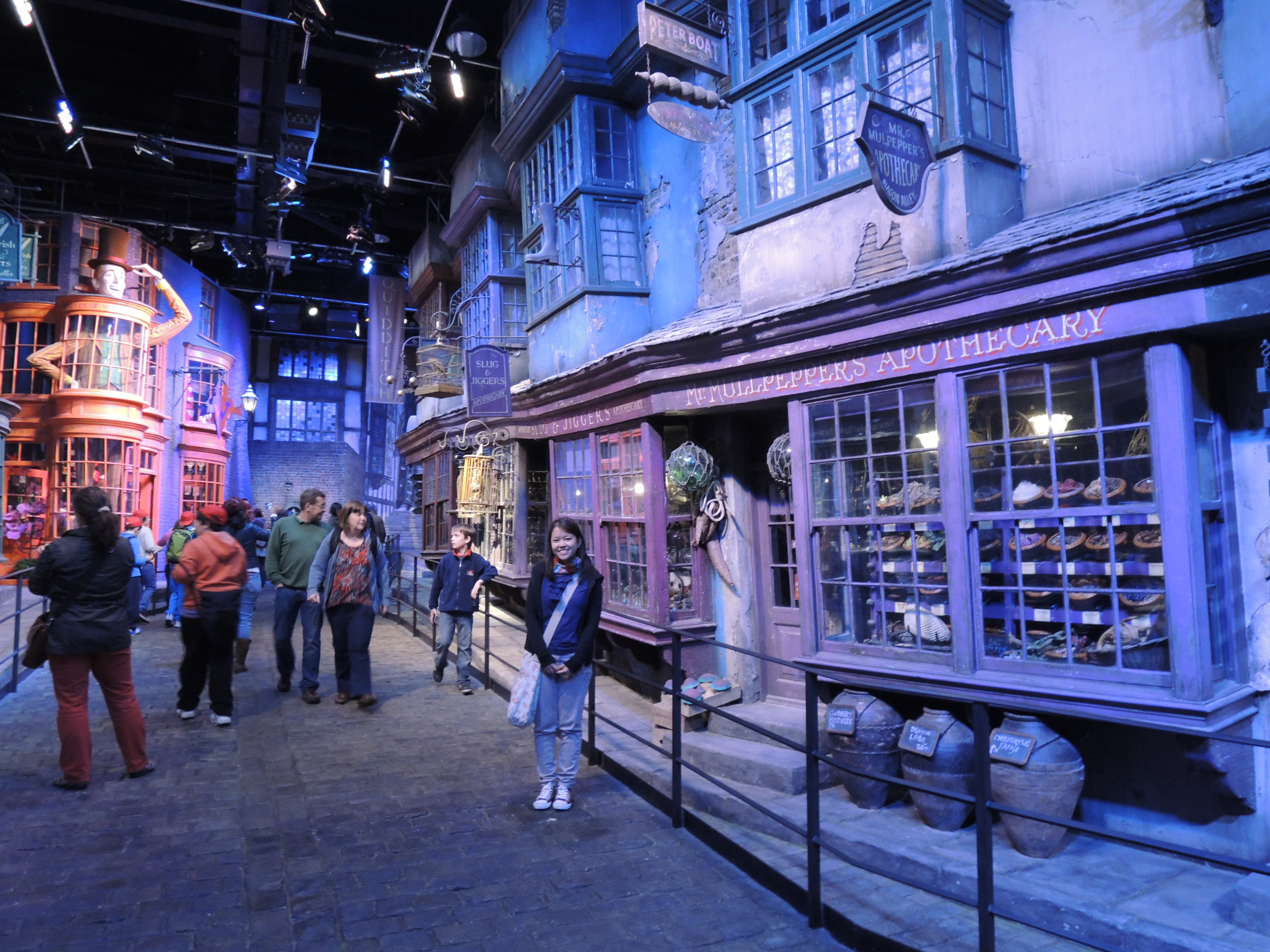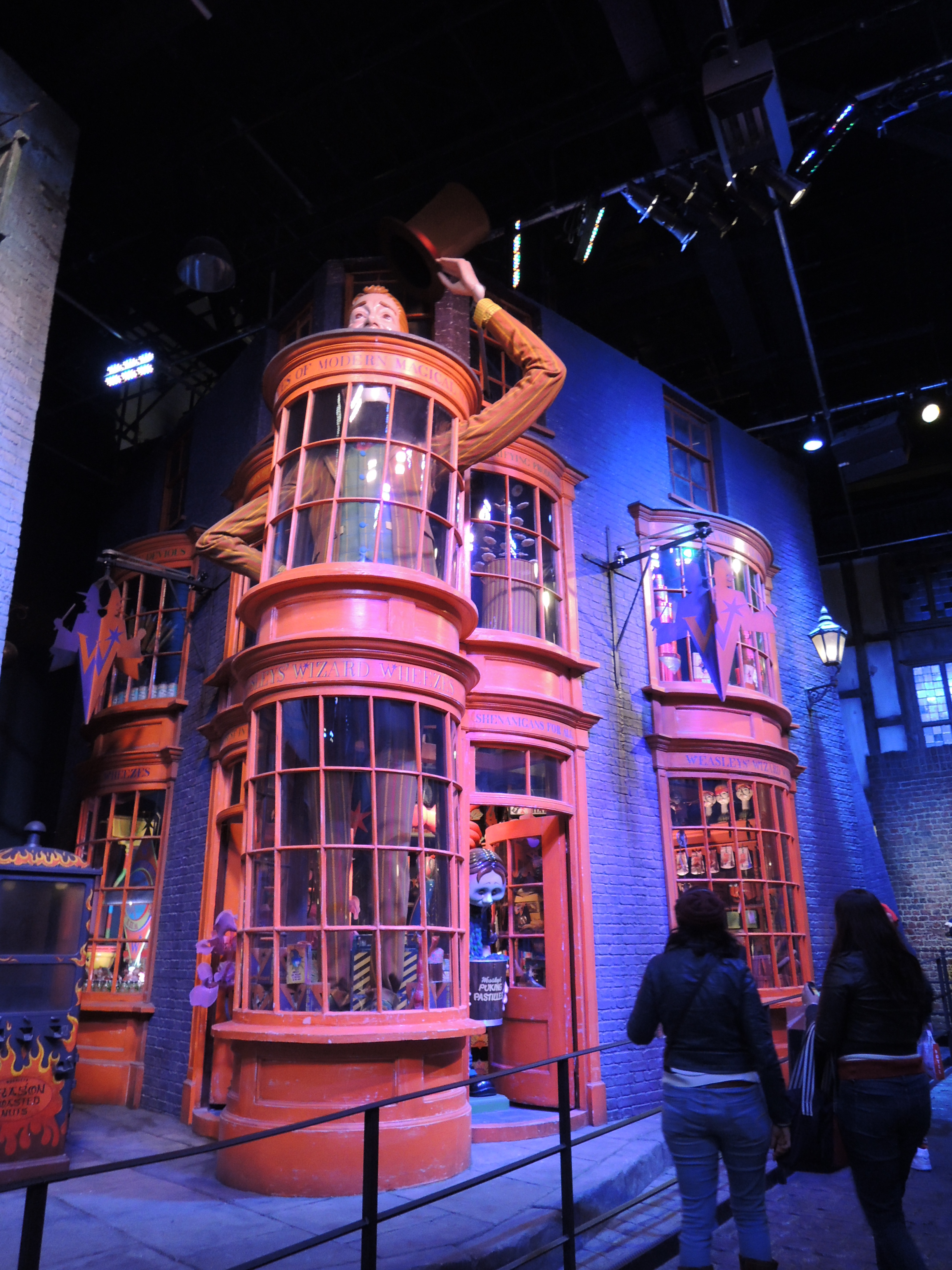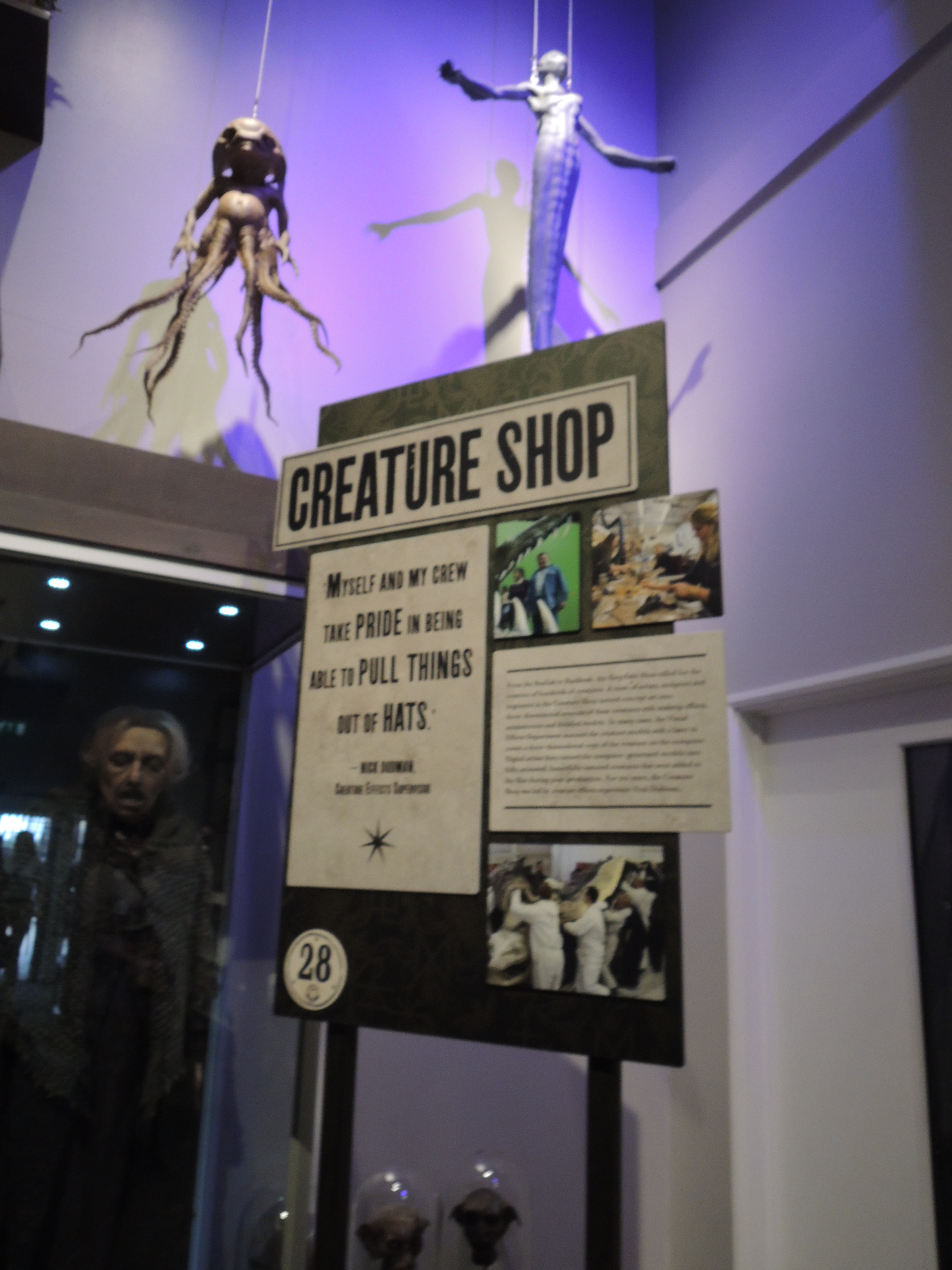 The tour resumed inside the building where creature masks were displayed such as the goblins, mermaids, giants etc and then I rounded a bend and I WAS AT DIAGON ALLEY!!!!! It was so cool that I got to see all the shops in the movie and also Weasley’s Wizarding Wheezes and it really felt like I was actually there, which I was, right???