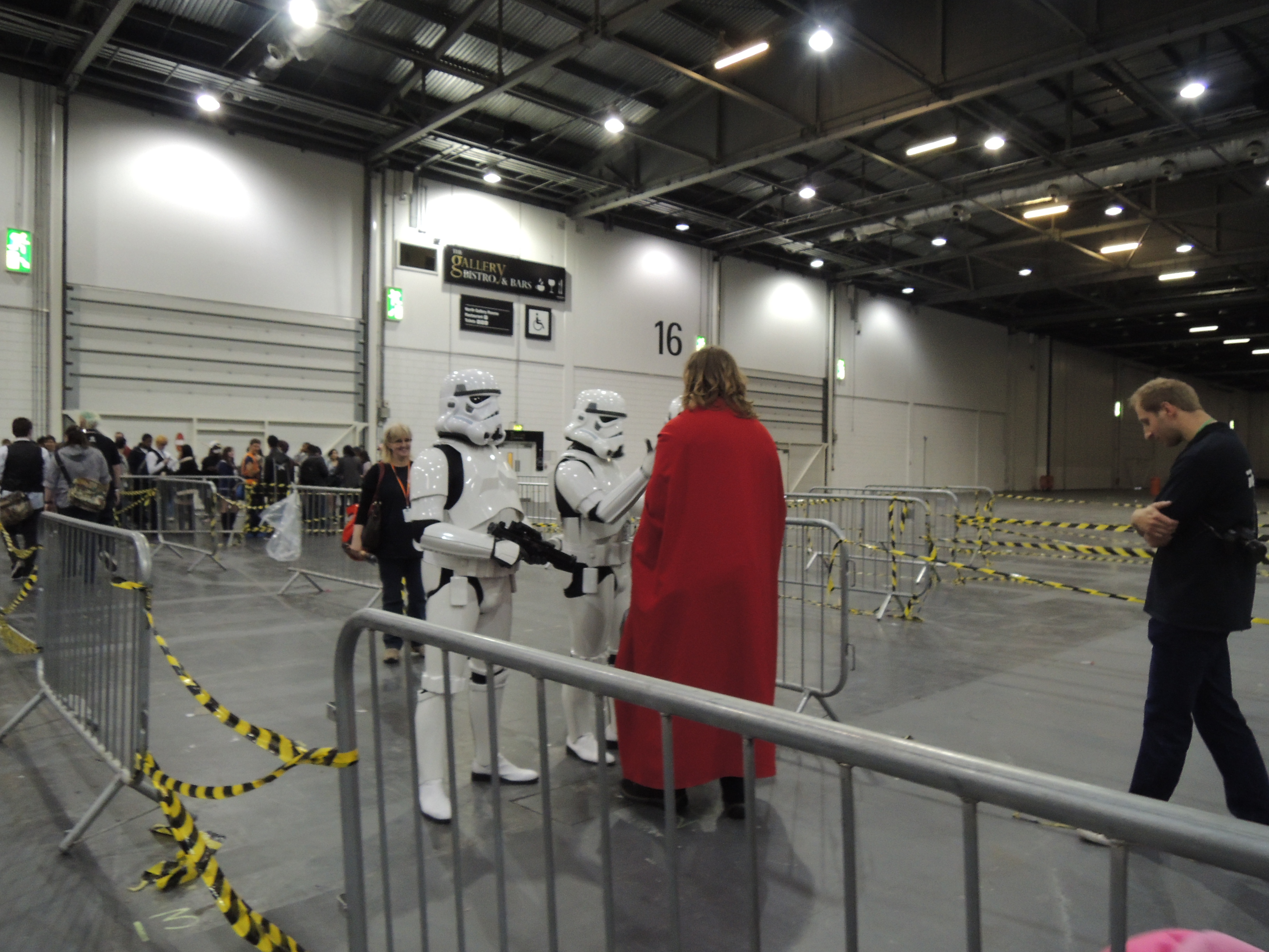 So I didn’t go out that day, and I was in central London the whole of Saturday, so at around 10.30AM in the morning on Sunday (the doors to Comic Con opened at 11AM), Kenzie drove me to London Excel at Royal Victoria Dock where Comic Con/Vidfest was. And let me tell you, the place was full of all kinds of cosplayers. Followers of my twitter would know what I’m talking about since I was tweeting the entire time I was queuing up for the tickets. And it was a long queue- like, really, really, really, REALLY long. But it was a fun queue because I was exclaiming internally whenever I saw a particularly interesting cosplay. There were people dressed as Star Wars Imperial Stormtroopers, interrogating people (humorously) before they joined the queue and one of these people so happened to be a Thor cosplayer. It was hilarious. There were people cosplaying characters from Super Mario, Adventure Time, even Wreck-It Ralph (I was fangirling so hard) and Harry Potter and it was so cool and some were holding signs saying “FREE HUGS” and strangers were high fiving each other and god bless conventions like these.
