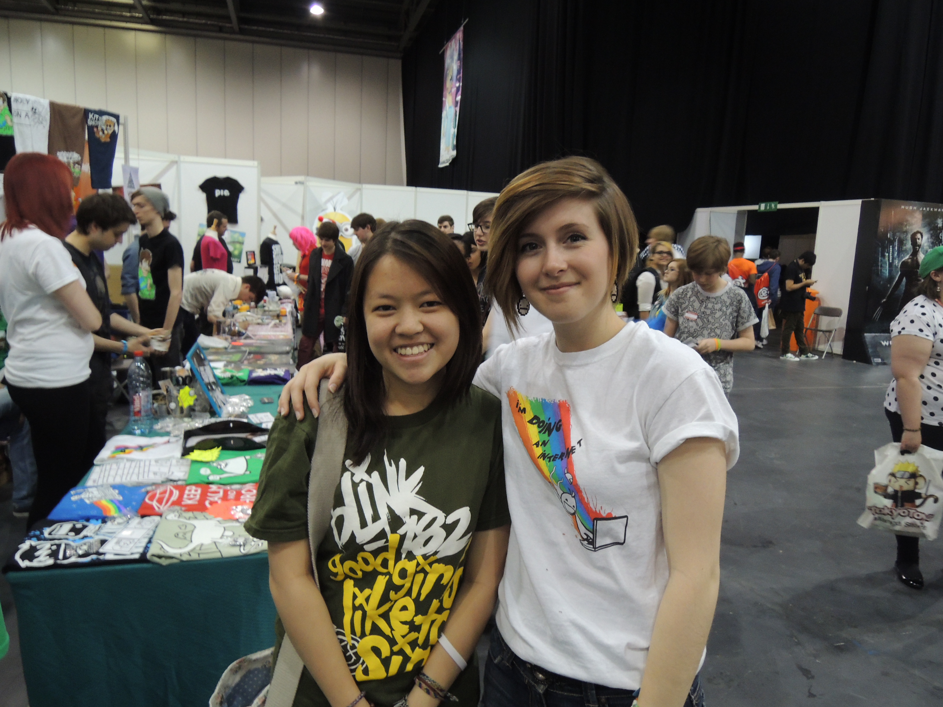 After Bing left, I decided to get some Tomska merch at last. Here was where I met Jenny Bingham, aka Bing’s sister and Tom(ska)’s girlfriend. I’ve always loved Jenny because her videos have a special originality trait to it and one time she replied to my snapchats twice and I almost fell off my couch at the time. I was also right to think that she was a really, really lovely person. She didn’t have her own booth but she was manning Tom’s really huge one and when I approached her and said, “Hi Jenny!” she said hi and asked if it’s ok that she took a photo with (she pointed at a guy who was standing next to her) him first and I said sure but there was no one to help him take the photo so I volunteered to help them out. After that, he offered to help me and Jenny take a photo with my camera so really, it’s a cycle of life. Or something. I don’t make sense but I didn’t make much sense at all at Vidfest anyway. After that she signed my shirt and I said “You were really good in Charlie’s Tea Chronicles video!” and she said “Thanks! Everyone did a really good job with that video!” and I said “I also sent you a snapchat once” in which she replied “I’m sorry I get a lot of snapchats all the time” which was fine by me because I didn’t expect her to remember me but it was something to keep the conversation going. And then I said “it was really lovely to see you!” and she said “you too!” and askjfhsdjfjksdgk she’s so lovely do you understand!!! Omg