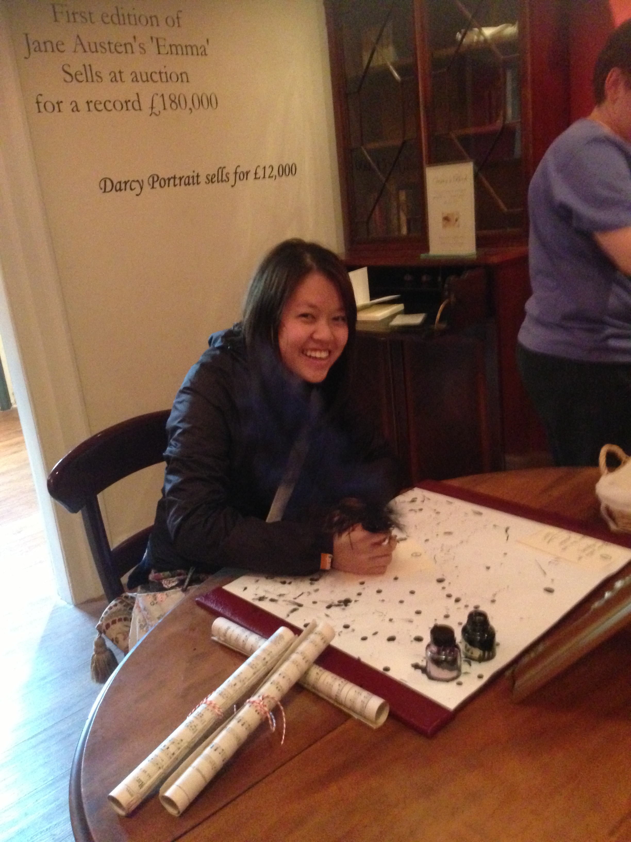 On Saturday, I went to Bath city centre with Sa Pek and Aunty Sue where we visited the indoor market (equipped with astonishingly realistic cardboard cut-outs of Queen Elizabeth and Obama for tourist purposes) and also the Bath Abbey. The highlight of the day however, was visiting the Jane Austen Centre which is basically a Jane Austen museum which was established in the exact same house Jane Austen lived in when she was living in Bath. It was on Gay Street, if you’d like more specific details. I even got to dress up with a gown and bonnet and write with a real feathered quill. To experience the real magic, the photos are here. That same night, I attended a concert at St Andrews Church in Castle Combe and I was highly impressed, to be honest.