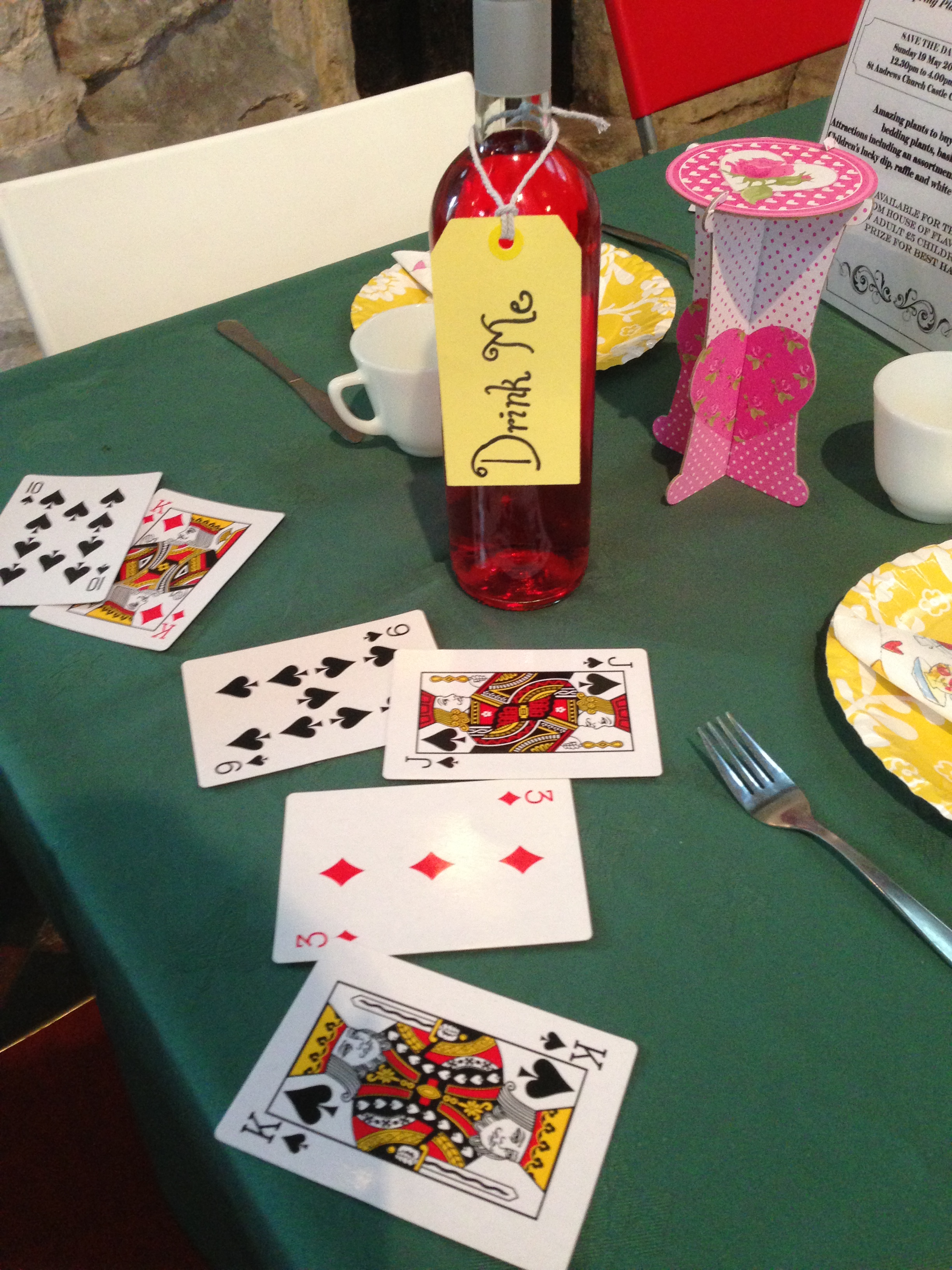 The next day, which is today, a spring fair was held at the St Andrews Church at Castle Combe and I was running the booth for the White Rabbit Treasure Hunt which I’d spent yesterday preparing for. Basically, there were ten posters around the village and people had to look for stickers on the posters and complete a list of stickers they had to find and the person with the best time wins. There were also many other booths like ones selling plants, cakes, bread (Aunty Sue’s booth), Raffle tickets (lucky draw for those who don’t know aka me initially), handicrafts and others. It was a fundraising event so it was very light hearted and there were quite a lot of people who turned up, including Japanese tourists. The theme was Mad Hatter’s Tea Party so I also did the “Drink Me” and “Eat Me” labels on bottles and jars which you can see here and Sapphire and her friends turned up as well as Kenzie and his parents. It was a really great event and I enjoyed it a lot.