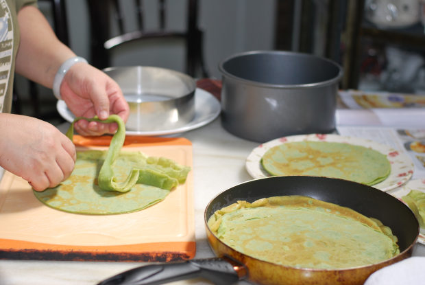 Assembling the crêpes