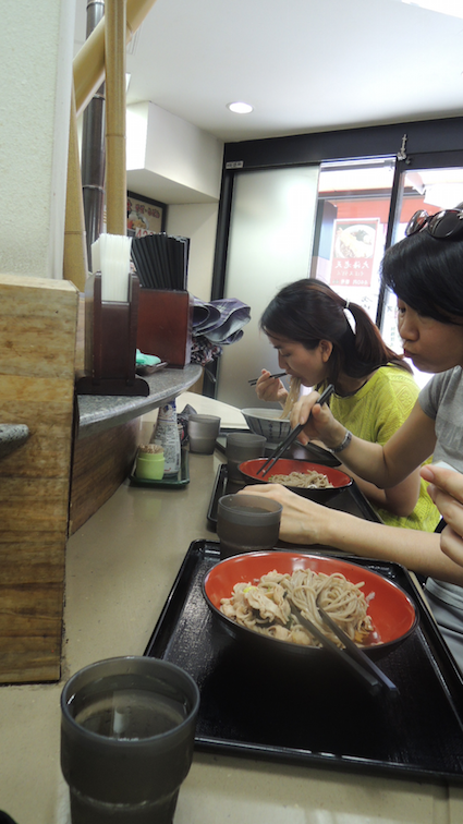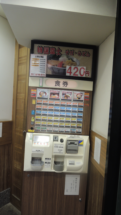 Our first meal in Tokyo was at a Japanese soba fuji place (I’m not sure of its technical term but I daren’t use the word ‘restaurant’) where I was introduced to a whole different culture of the Japanese. Outside the building was a glass case display of plastic models of a variety of soba noodles and next to it was a machine with pictures of these dishes. Apparently the system works as such: you choose the dish you want (complete with price listings), slot in money, get change and a ticket in return, and then enter the place where you hand over the ticket to the kitchen counter and wait for your number to be called once your food is ready. There was a fumble for a while because the person manning the counter only spoke Japanese and I used my meagre knowledge of Japanese numbers to make sure we understood what was going on. At least we managed to get our food in the end.