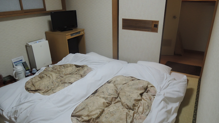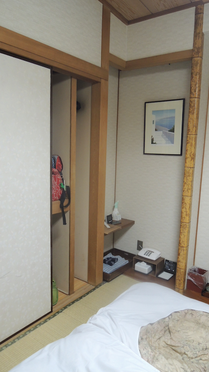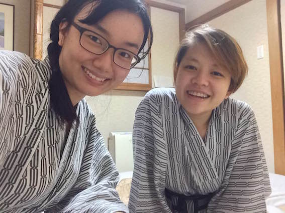 Since it was our last night staying in Ueno First City Hotel, in spite of our weariness, Rumin and I pulled on the yukatas the hotel provided and did leg exercises to alleviate the soreness in our legs.