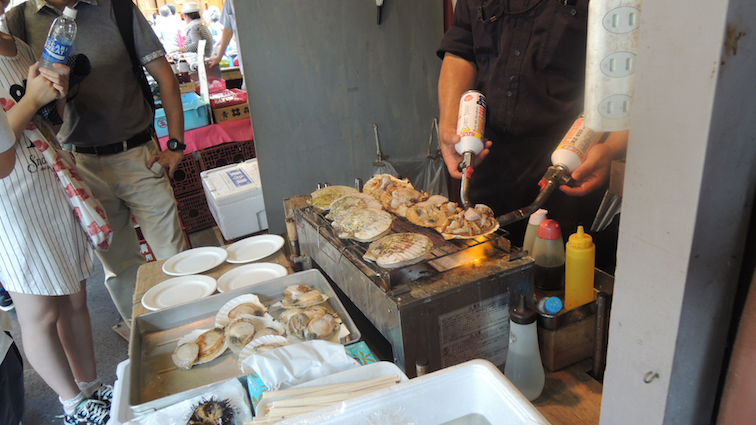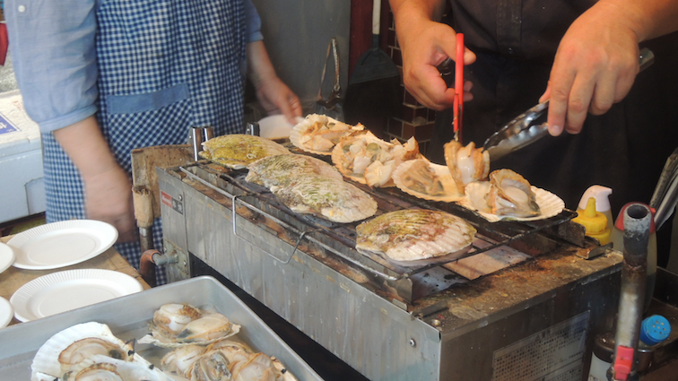 We visited Kuromon Market first where we had breakfast (fresh scallop and octopus aka the absolute best)