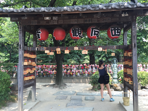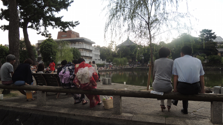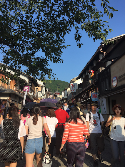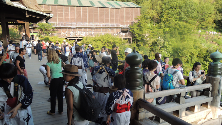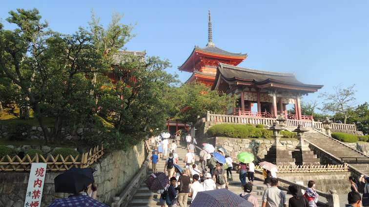 The entire time in Kiyomizu Dera, Rumin and I discussed and expressed ludicrousness at the fact that the local Japanese people clad in yukatas and had their hair done nicely never seemed to break into sweat or had their makeup ruined under the searing heat. It wasn’t hard to spot tourists in Japan in the summer: they (we) would be the ones drenched in sweat, face crinkled in weariness and hair all over the place in contrast with local natives who not only appeared to be unaffected by the heat but managed to look impossibly good at that too.