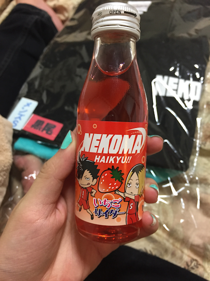 I also grabbed a Nekoma strawberry (read: probably poison) flavoured drink which was all kinds of Ridiculous on the same level of a box of five milk breads with Oikawa’s face on the box selling for 2000 yen just for, well, the Ridiculousness.