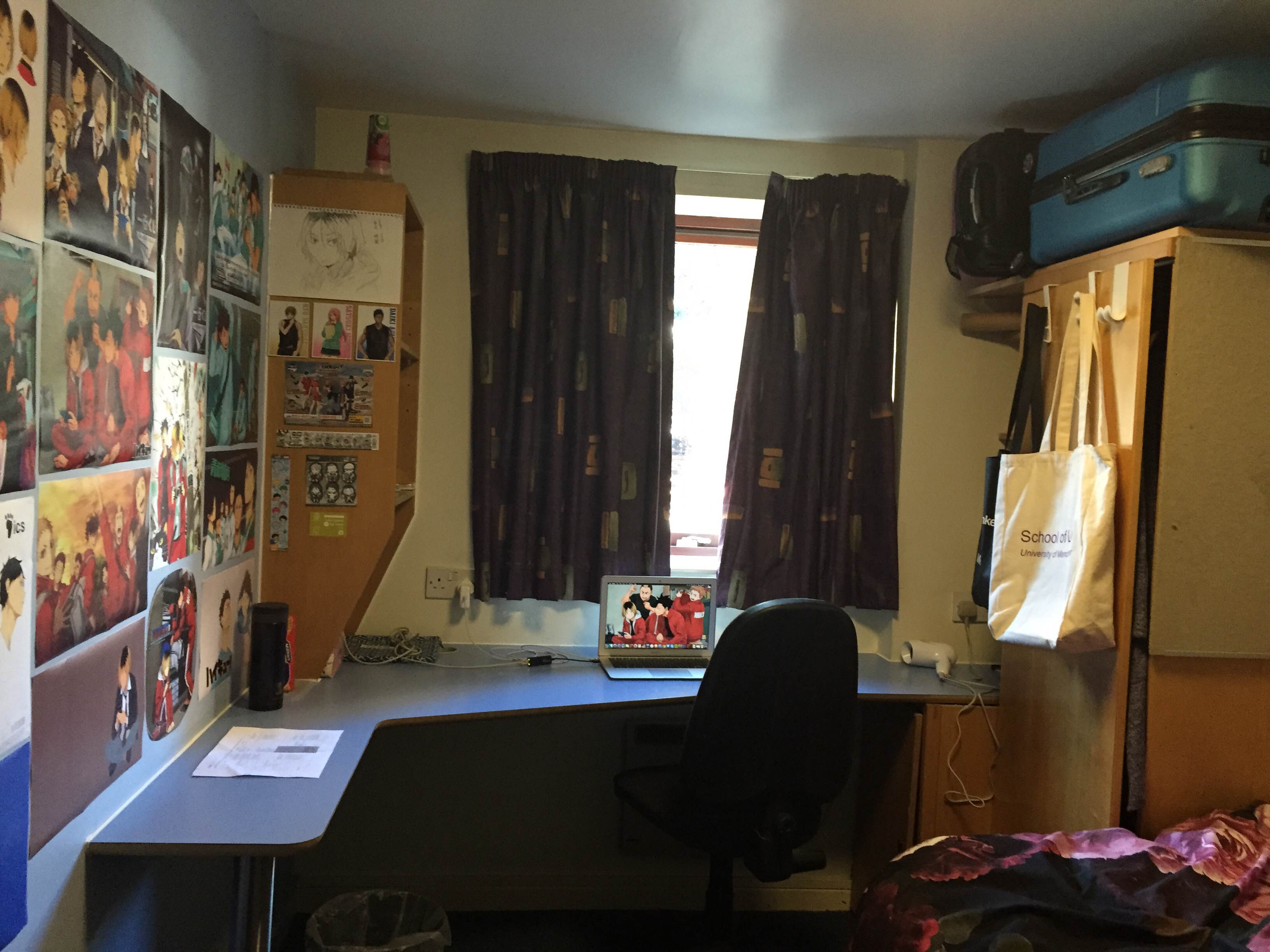 Ah yes, my arsenal of anime posters that I always provide multiple warnings about for people entering my room for the first time. I really don’t have to justify myself but it made the place feel more like a semblance of home (or what home means to me anyway).